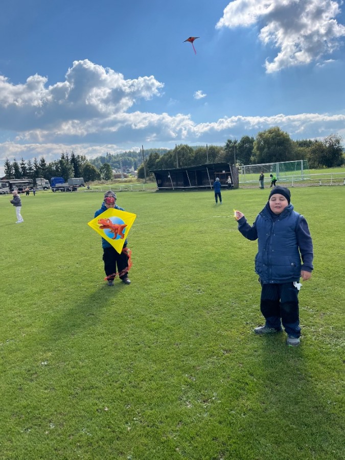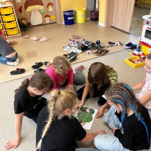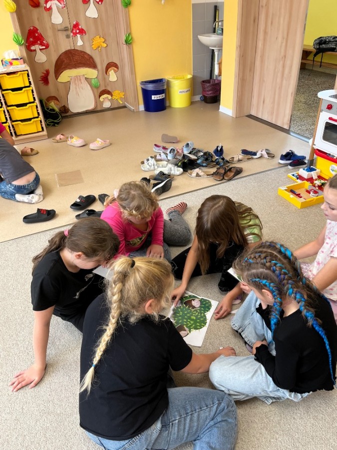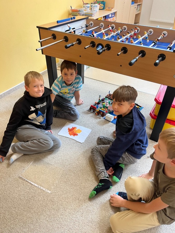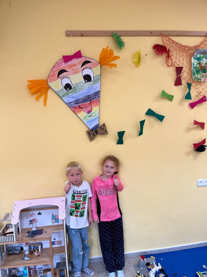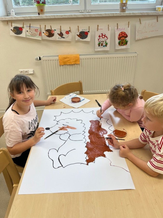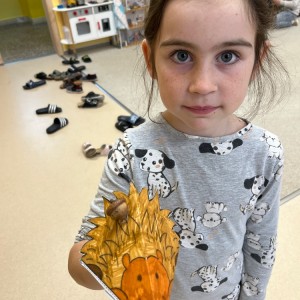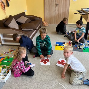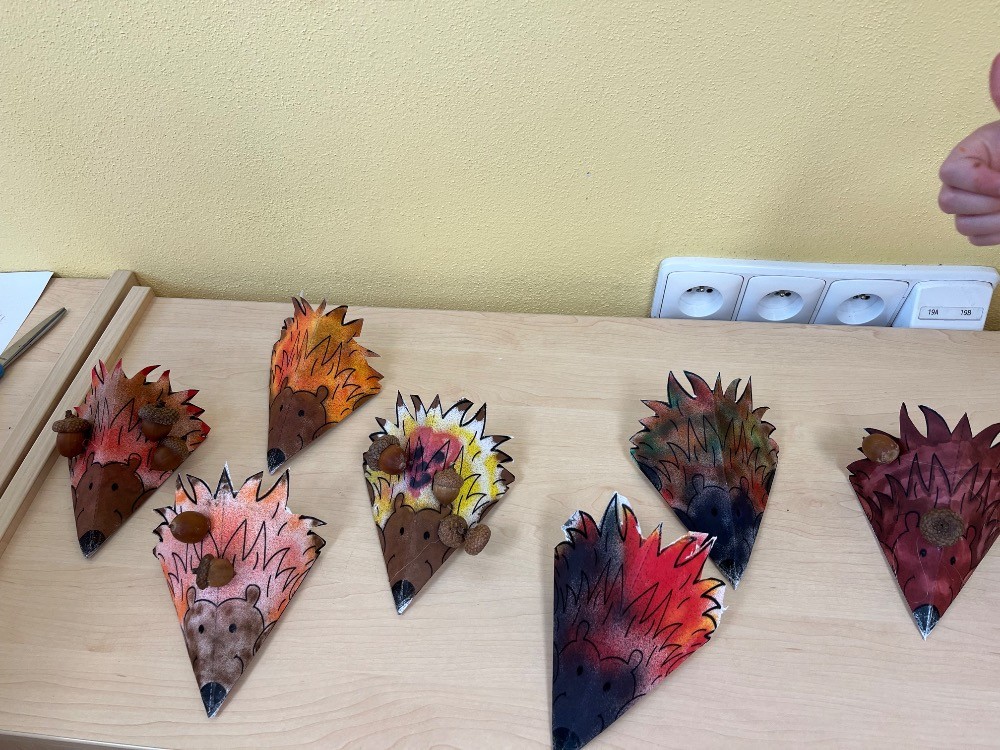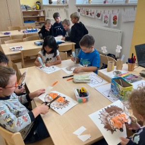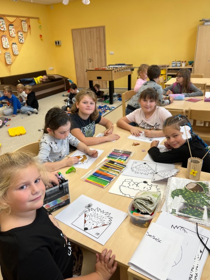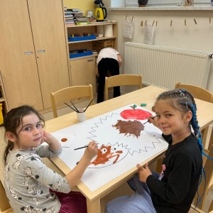 První říjnové týdny jsme se věnovali podzimu. Povídali jsme si o měnící se přírodě a jak se zvířátka chystají na zimu. Vyzdobili jsme si třídu v podzimním duchu - dráček Mráček a Ježčí rodinka. Děti měly možnost se zapojit do nabízených činností a vyrobit si ježečka na různé způsoby. Procvičovali jsme logiku a představivost při skládní puzzlí s podzimní tématikou. Na fotbalovém hřišti jsme uspořádali celodružinovou akci - Pouštění draků.