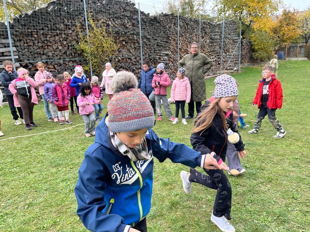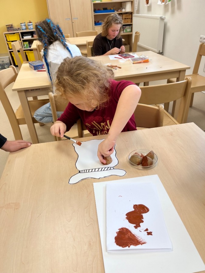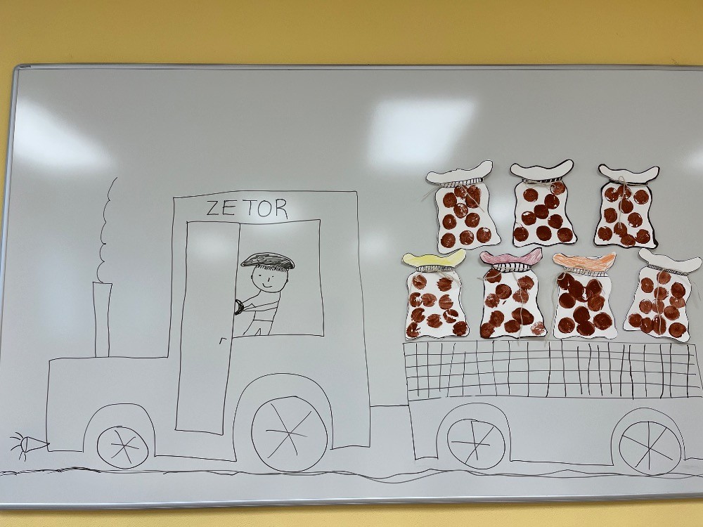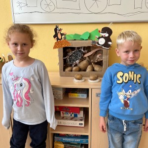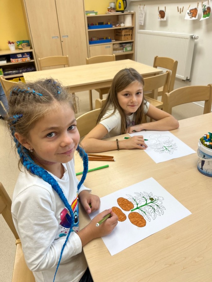 Projektový týden jsme zahájili společnou besedou o bramborách, jejich významu a prospěšnosti pro lidský organizmus. Povídali jsme si, jak se pěstují a sklízí. První den jsme zakončili pokusem – zkouška klíčivosti brambor. Další dny jsme tvořili didaktickou pomůcku, která nám názorně ukázala, jak roste brambora v zemi. Tvořili jsme razítka z brambor, sledovali jsme klíčivost a snažili se vzpomenout, v jakých pokrmech najdeme brambory. Procvičili jsme si logické myšlení pří skládání brambor do řádků podle velikosti. Při odpoledních procházkách jsme pozorovali, jak roste brambora na poli. Celý projektový týden jsme zakončili stezkou, kde děti plnily úkoly, které byly zaměřené na regionální potravinu. Za sokolovnou byly pro děti připraveny pohybové hry s bramborami, do kterých se zapojily i paní vychovatelky. Pro děti po celý týden přichystané omalovánky a pracovní listy s touto tématikou.