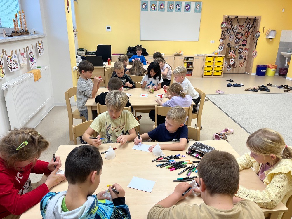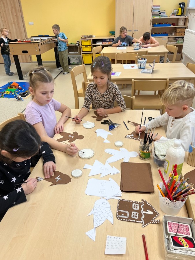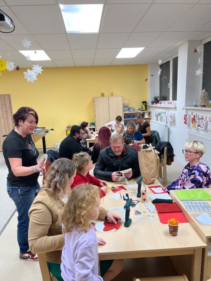 S příchodem první sněhové nadílky jsme si v družině užívali hrátek na sněhu a bobování. V družince jsme se dali do tvoření adventního kalendáře z ,,perníčků“, přívěsků na klíče se svým jménem a vánoční dekorace pro rodiče. U tvoření děti procvičovaly jemnou grafomotoriku ruky a abecedu z českého jazyka. Odpoledne jsme shlédli společně se IV. oddělením vánoční pohádku a v úterý 2. prosince se naše oddělení proměnilo ve vánoční dílnu, kde si rodiče společně se svými dětmi mohli vyrobit vánočního skřítka.