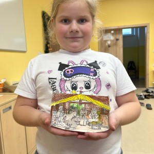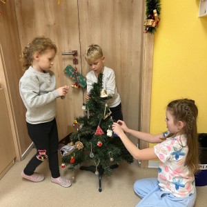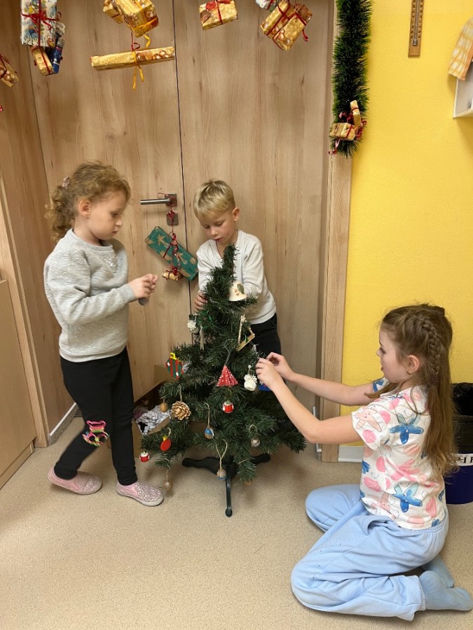 Povídali jsme si o vánočních zvycích, které jsme výtvarně znázornili. Děti nazdobily vánoční stromeček a vyrobily si papírový betlém.