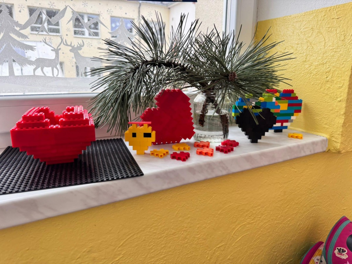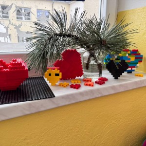 Máme rádi stavebnici Lego a na výzvu postav srdce z Lega jsme vytvořili srdíčka.