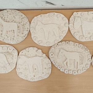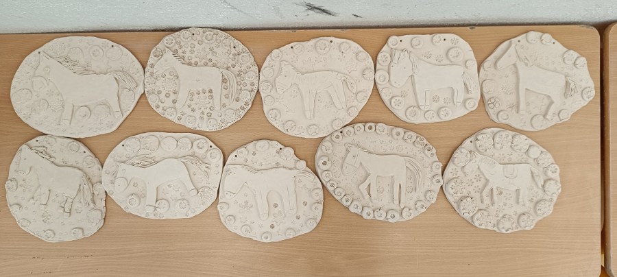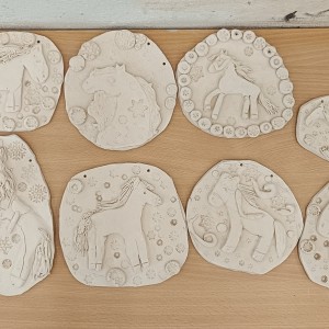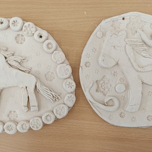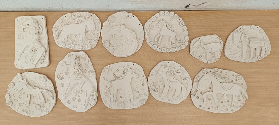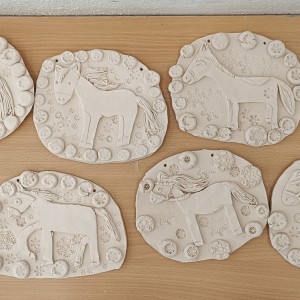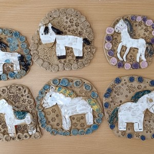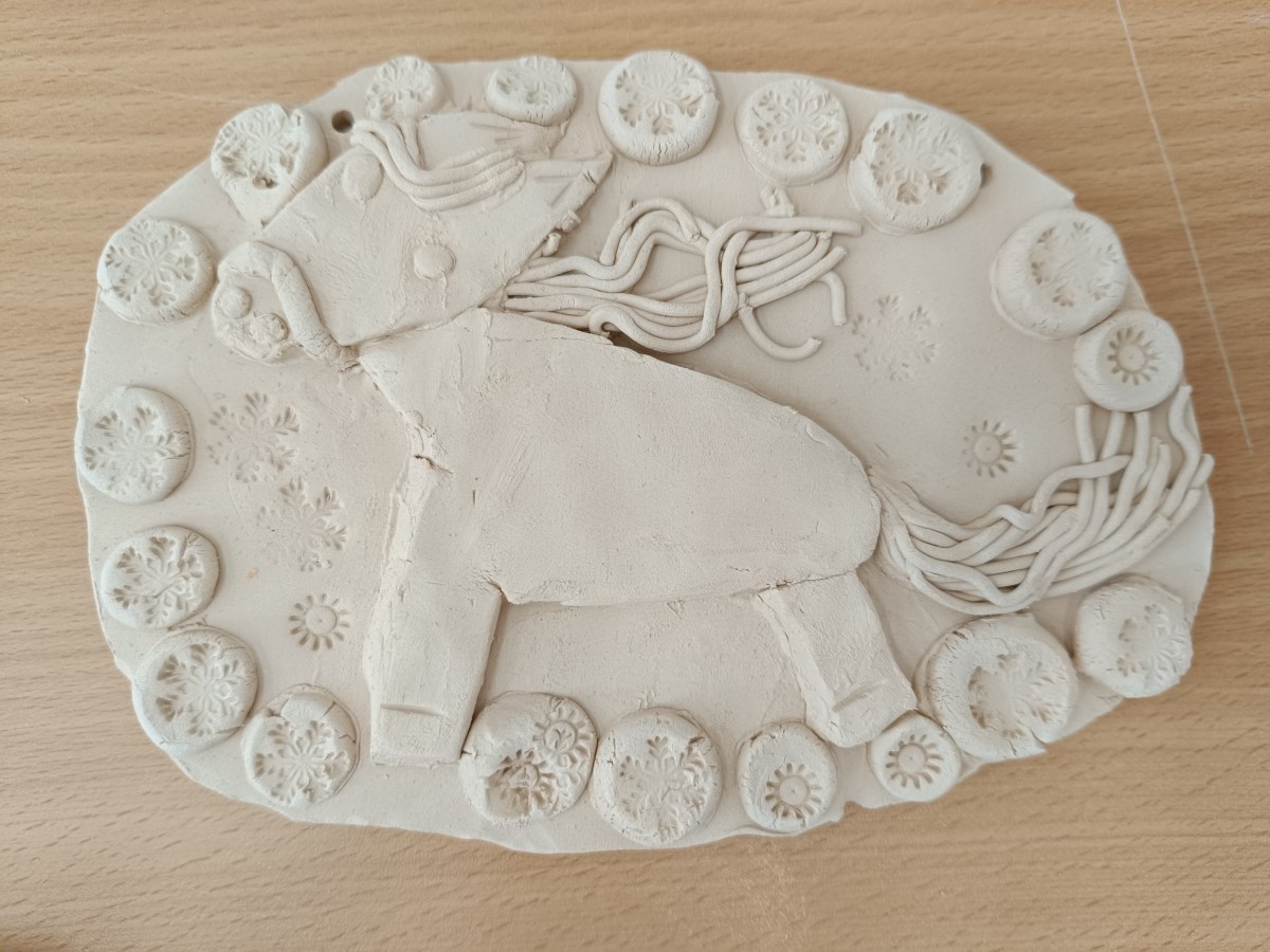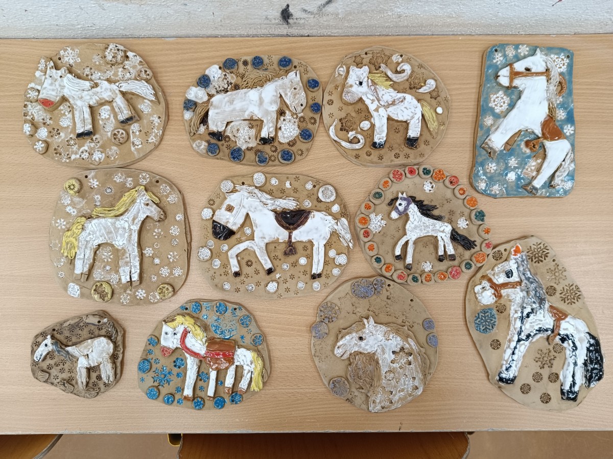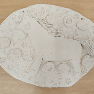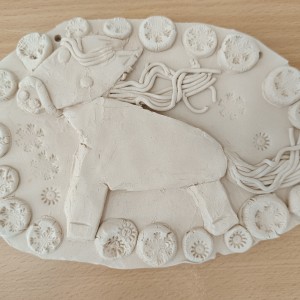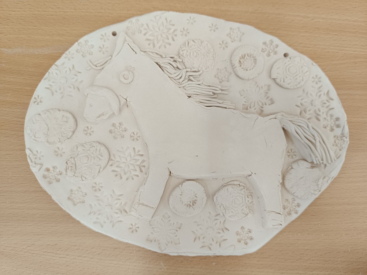 Keramický kachel zdobený burelem a glazurami.