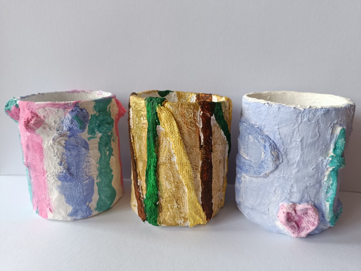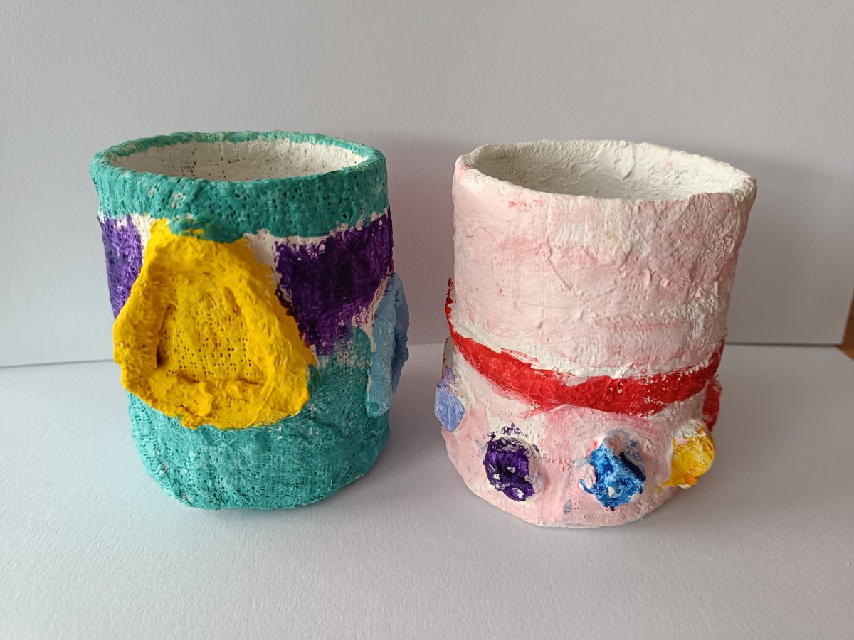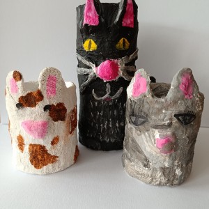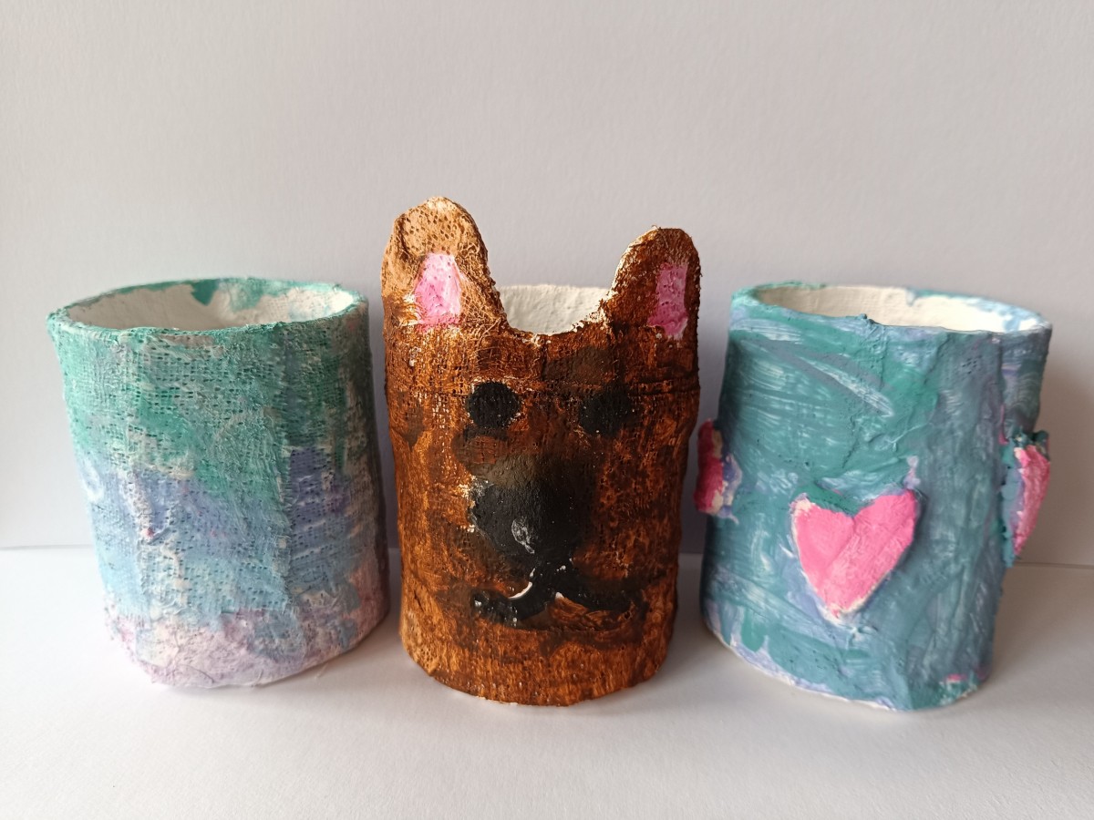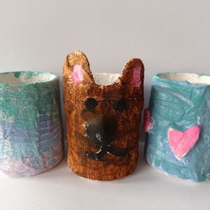 Tužkovník - papírová rolka od izolepy, sádrové obvazy, akrylové barvy.