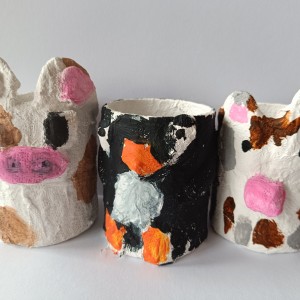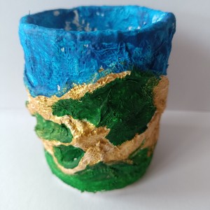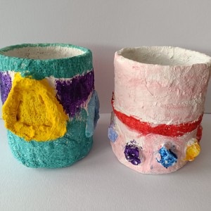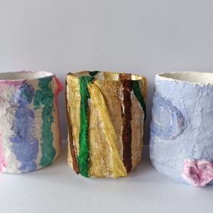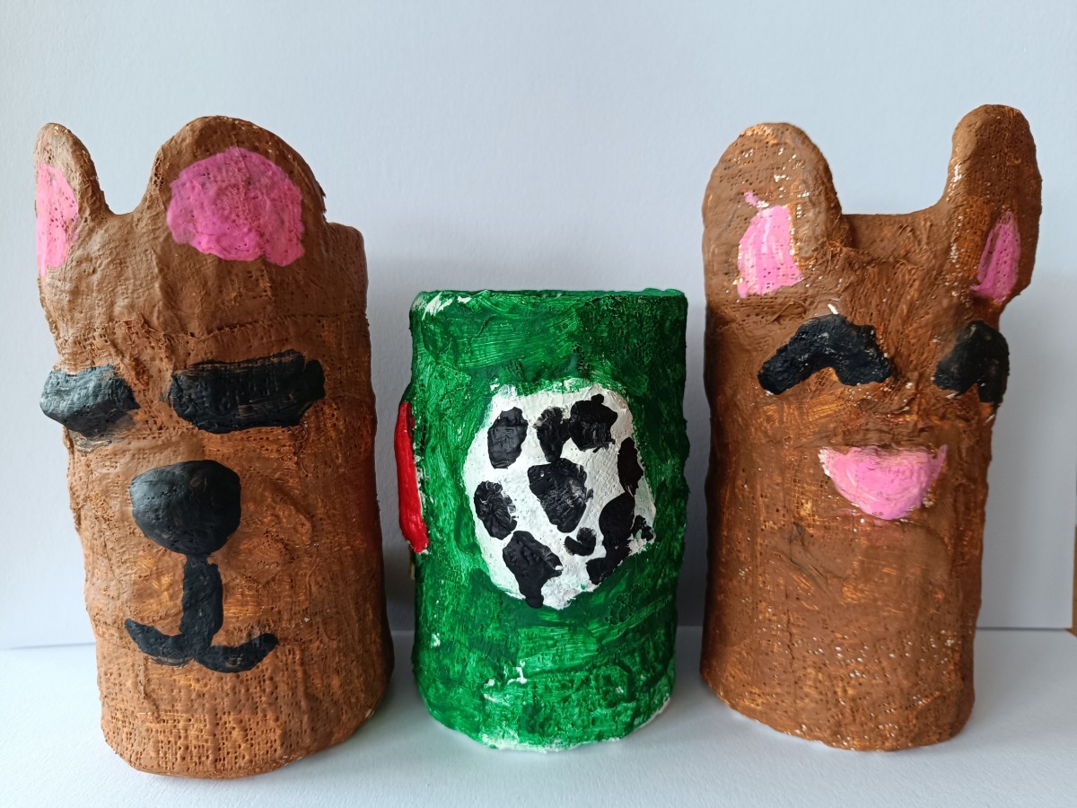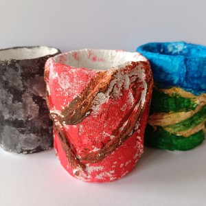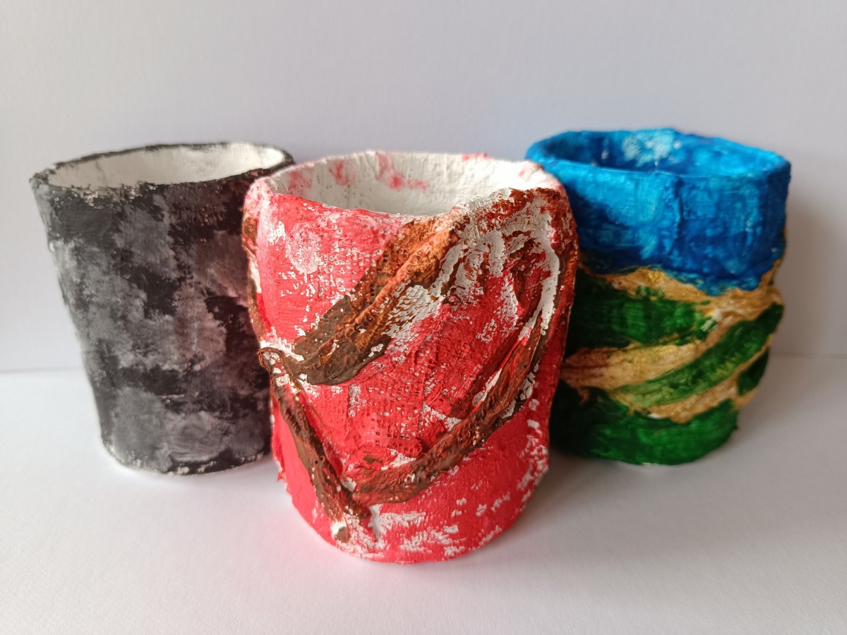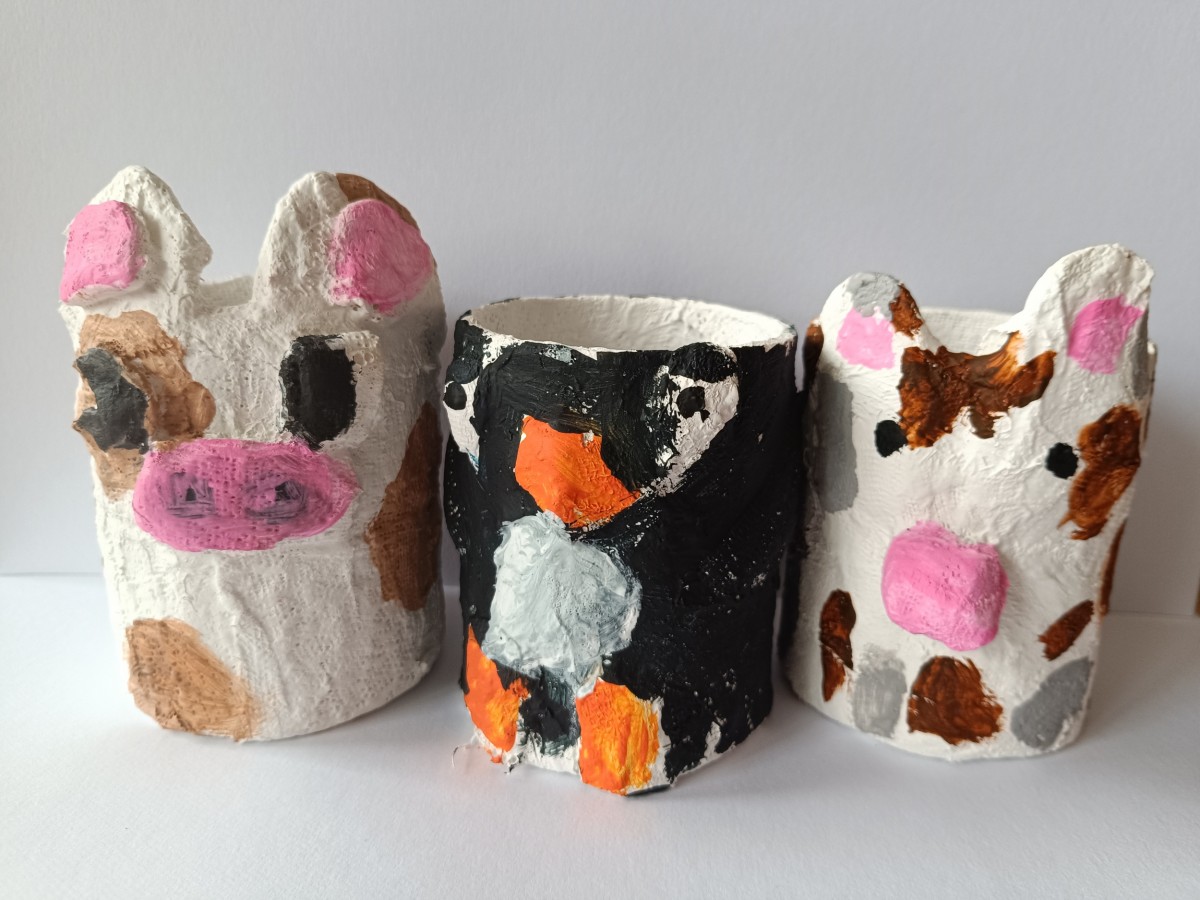 Tužkovník - papírová rolka od izolepy, sádrové obvazy, akrylové barvy.