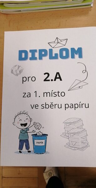 Ve sběru papíru, v kategorii 1. stupeň, jsme se umístili na úžasném 1. místě. Děkujeme všem rodičům i dětem, kteří se zapojili. I jeden kilogram je důležitý. Získané peníze opět poputují do třídního fondu.