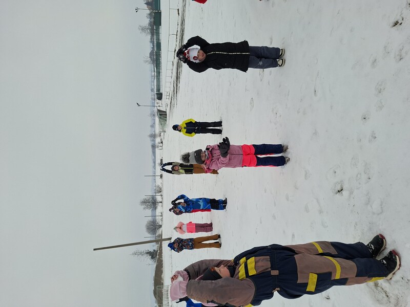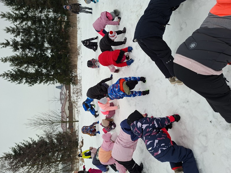 Sněhová nadílka nás opět zavedla na hřiště, kde jsme si zacvičili.