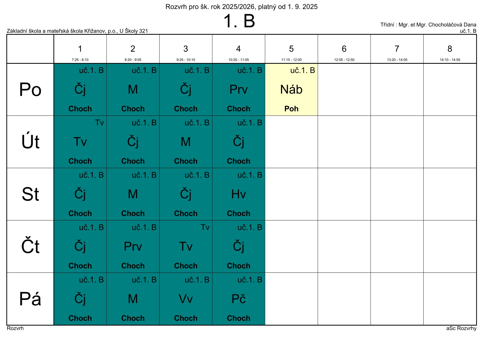 Rozvrh třídy 1. B