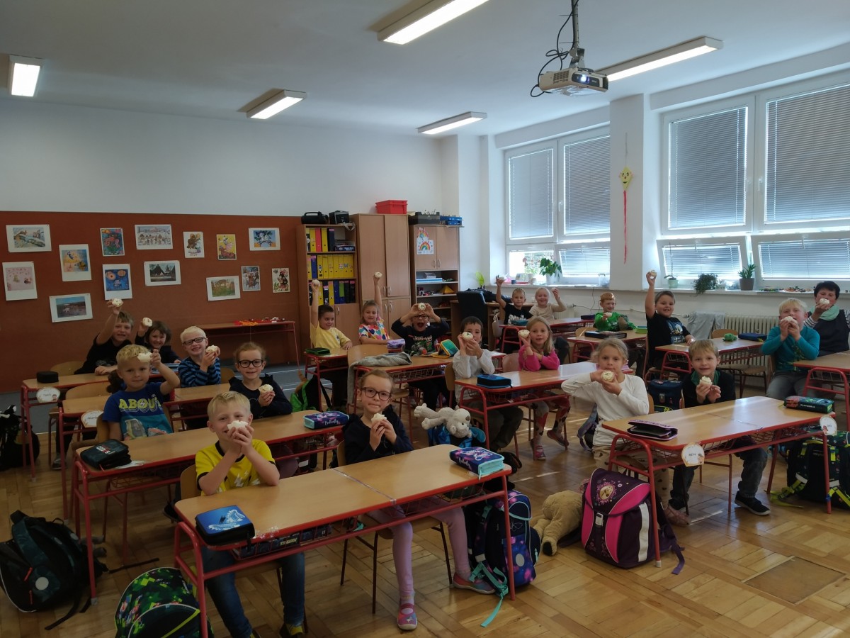 Ve třídě jsme společně oslavili svátek zvířat, který se slaví 4.října. Celý školní rok nás budou zvířáta provázat ve vyuce. Děti si donesly do školy plyšové mazlíčky. Povídaly jsme si o jejich zvířátkách, jak vypadají kde žijí, čím se živí. Naučili jsme se písničku od Z. Svěráka - Svátek zvířat. A žádná oslava nemůže být bez tance a bez dortu. Každý si pochutnal na mini dortíku. A společně jsme zatančili se zvířátky.