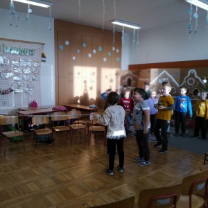 Děti měly povědět o své nejoblíbenější pohádkové postavě. Poslechli si pohádku O osamělém království, namalovali erb, skládali se vzájemně podle velikosti a zpívali. Poslední a nejdůležitější úkol, bylo přetahování lana. Když se všichni spojí a táhnou za jeden provaz, hned je to mnohem lepší, mohou vyhrát. Program se líbil, hodně jsme se nasmáli a užili si něco nového.