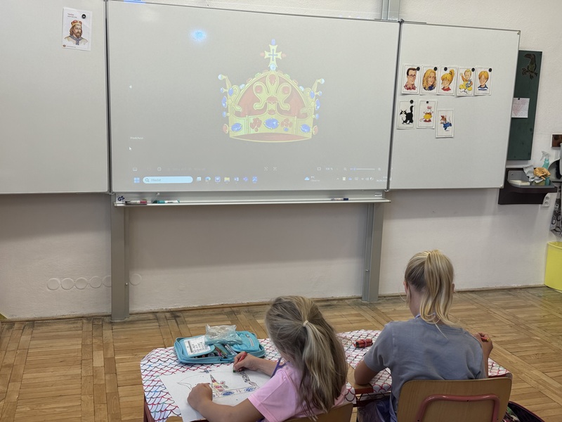 V pátek 26. září jsme si ve třídě povídali o svatém Václavovi – o tom, kdo to byl a proč je pro naši zemi důležitý. Ukázali jsme si svatováclavskou korunu, která patří mezi české korunovační klenoty, a řekli si, čím je výjimečná.
