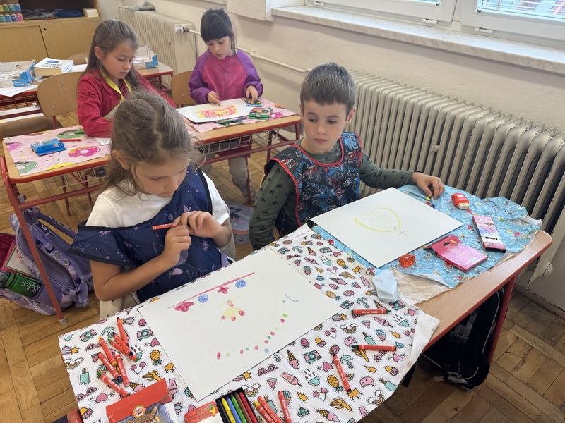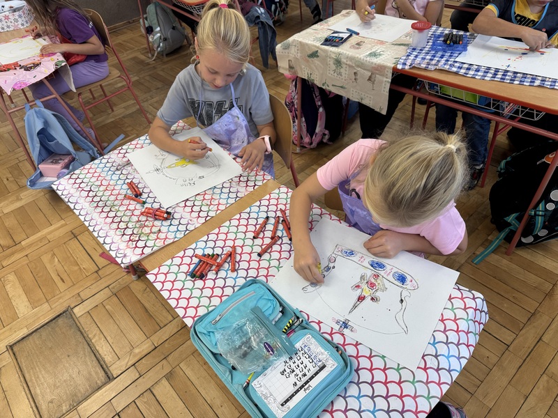 Potom jsme ji kreslili podle obrázku co nejpřesněji. Snažili jsme se zachytit její tvar, ozdoby i barvy. Vznikly krásné obrázky, na které jsme byli pyšní!