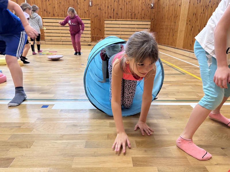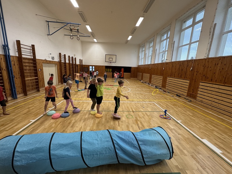 Ve čtvrtek 30. října jsme si v tělocviku vyzkoušeli speciální hodinu zdravotní tělesné výchovy, která byla obohacena o fyzioterapeutické pomůcky. Díky nim jsme si hravou formou procvičili správné držení těla, rovnováhu i koordinaci pohybů.