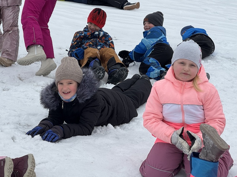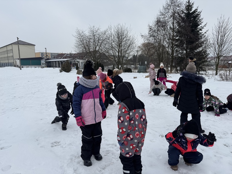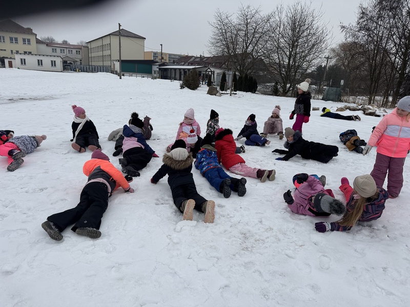 Tento školní rok nám přeje zimní počasí, tak si můžeme zacvičit venku na sněhu. Děláme rozcvičku, trénujeme běh a hod snéhovou koulí.