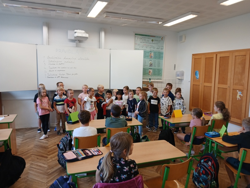 Dne 2. září navštívili naši třídu žáci prvních ročníků. Někteří z nich našli v naší třídě své sourozence a kamarády. Popřáli jsme jim, aby se jim ve škole líbilo.