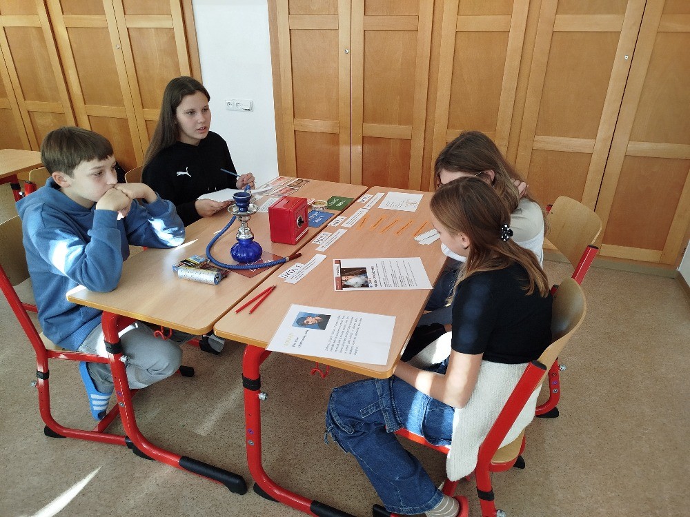 V pátek 7.11. jsme měli preventivné program na téma: „Dej si taky, ne nechci.“, kde se probíraly návykové látky. Zjistili jsme, jak jsou škodlivé, ať se jedná o alkohol, cigarety, anebo vapo. Program trval 2 vyučovací hodiny, během kterých jsme si vyzkoušeli například to, jak se špatně orientuje opilý člověk. Bylo super se dozvědět něco nového. Užili jsme si to a hlavně se nasmáli.