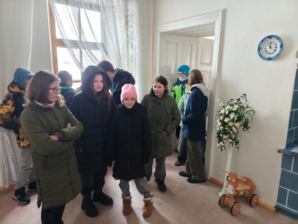 Nejvíce se nám líbila půda, kde jsme obdivovali oponu ze sokolovny, nářadí z uranových dolů i starou kalkulačku. V obřadní síni jsme si prohlíželi naše zápisy v kronice z vítání občánků. Nakonec jsme se sešli v místnosti, kde zasedá místní zastupitelstvo, a pan starosta nám prozradil, jaké plány se v Křižanově chystají.